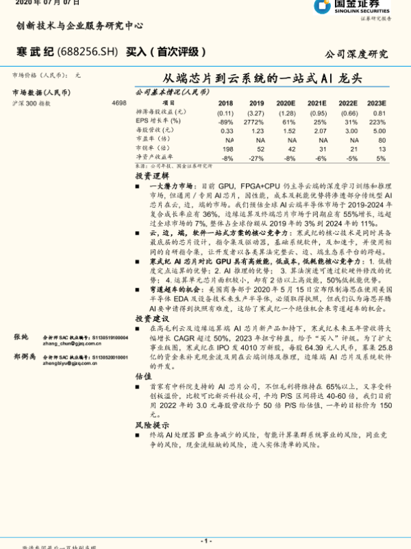 【国金证券】【20200707】从端芯片到云系统的一站式AI龙头-40页