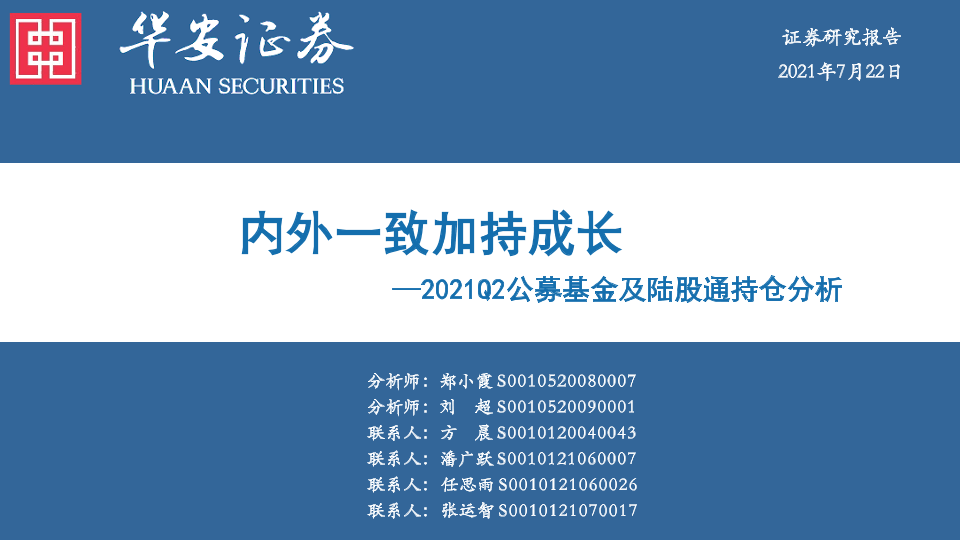 【华安证券】【20210722】2021Q2公募基金及陆股通持仓分析:内外一致加持成长-42页