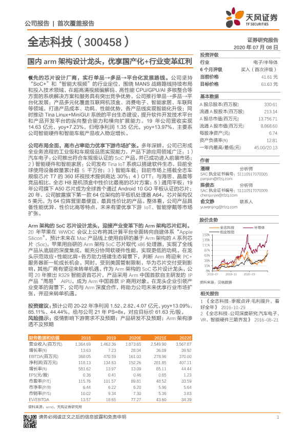 【天风证券】【20200708】全志科技-国内arm架构设计龙头,优享国产化+行业变革红利-32页