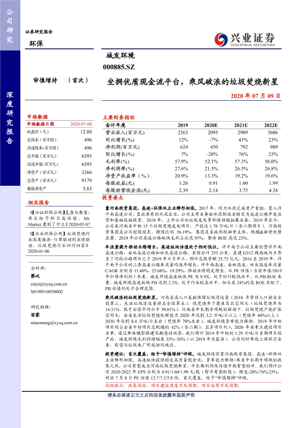 【兴业证券】【20200709】坐拥优质现金流平台,乘风破浪的垃圾焚烧新星-22页
