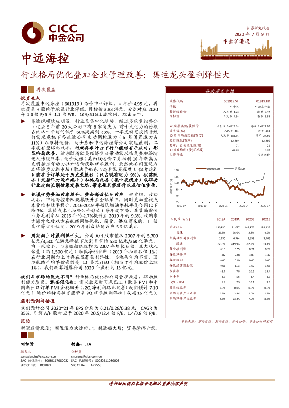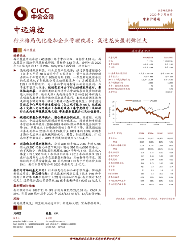 【中金公司】【20200709】中远海控:行业格局优化叠加企业管理改善:集运龙头盈利弹性大-29页