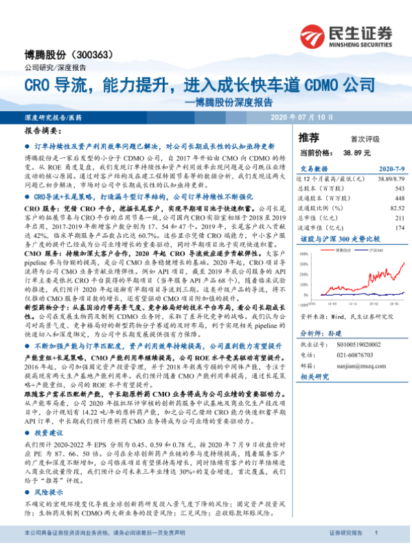 【民生证券】【20200710】博腾股份深度报告:CRO导流,能力提升,进入成长快车道CDMO公司-21页