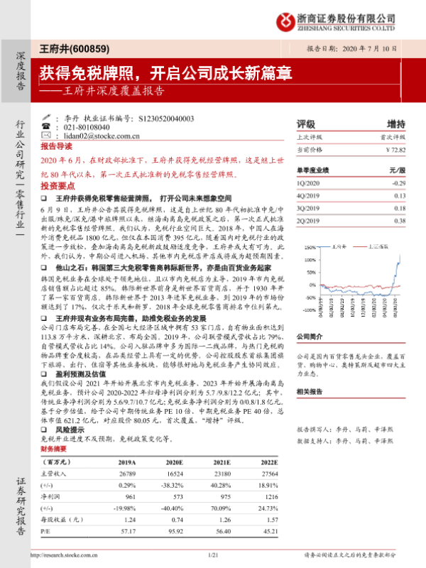【浙商证券】【20200710】王府井深度覆盖报告:获得免税牌照,开启公司成长新篇章-21页