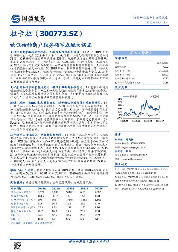 【国盛证券】【20200712】拉卡拉(300773.SZ):被低估的商户服务领军或迎大拐点-19页