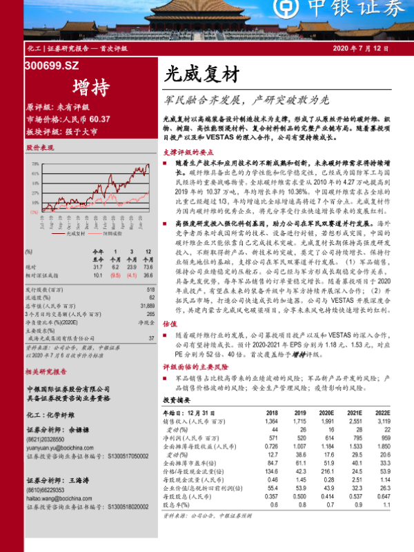 【中银证券】【20200712】光威复材-军民融合齐发展,产研突破敢为先-36页