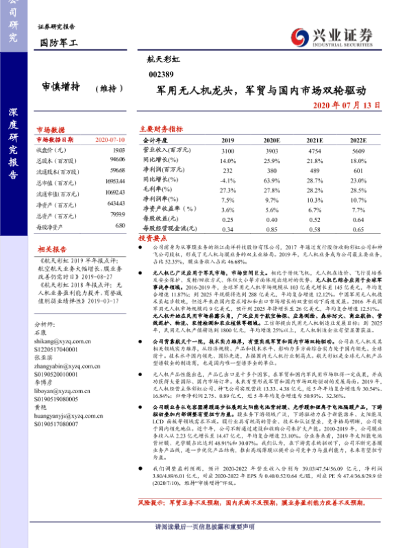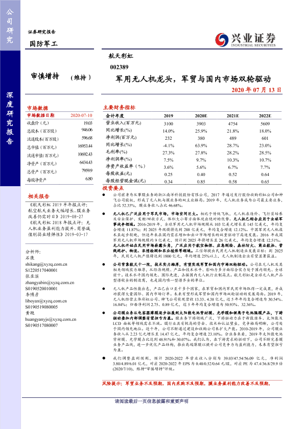 【兴业证券】【20200713】军用无人机龙头,军贸与国内市场双轮驱动-38页