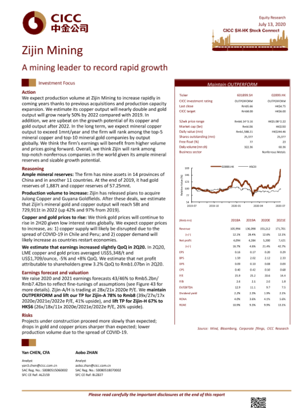 【中金公司】【20200713】紫金矿业 - A mining leader to record rapid growth-32页