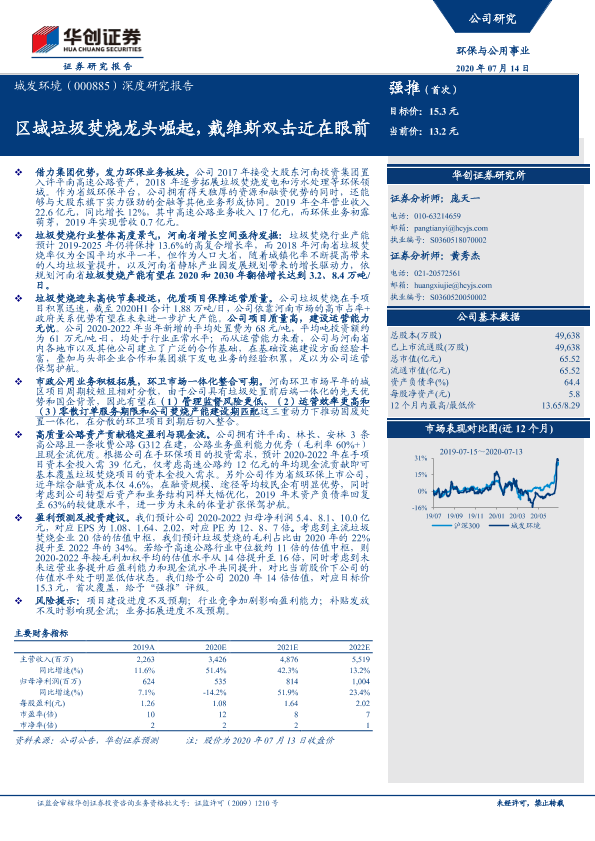【华创证券】【20200714】20200714-华创证券-城发环境-000885.SZ-深度研究报告:区域垃圾焚烧龙头崛起,戴维斯双击近在眼前-22页