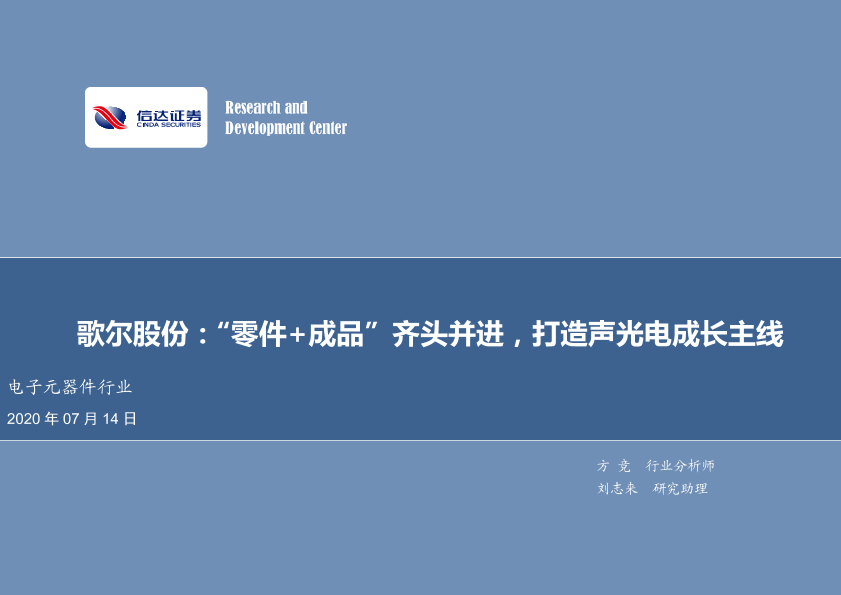 【信达证券】【20200714】歌尔股份:“零件+成品”齐头并进,打造声光电成长主线-38页