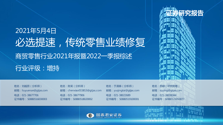 【国泰君安证券】【20220504】商贸零售行业2021年报暨2022一季报综述:必选提速,传统零售业绩修复-72页