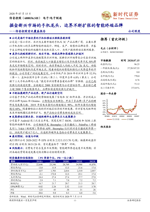 【新时代证券】【20200715】传音控股首次覆盖报告:掘金新兴市场的手机龙头,边界不断扩张的智能终端品牌-39页