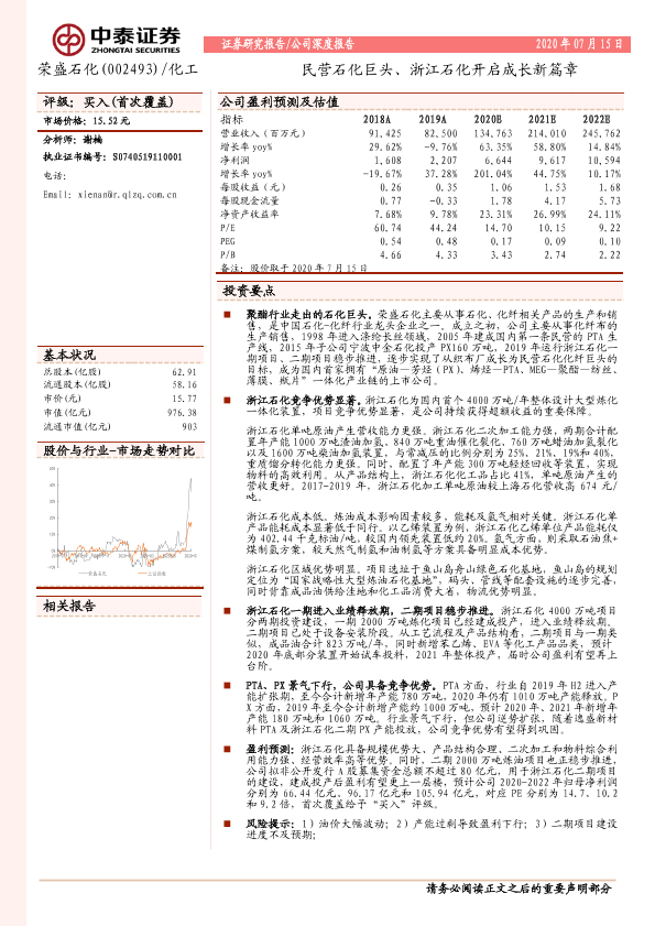 【中泰证券】【20200715】20200715-中泰证券-荣盛石化-002493.SZ-民营石化巨头、浙石化开启成长新篇章-25页