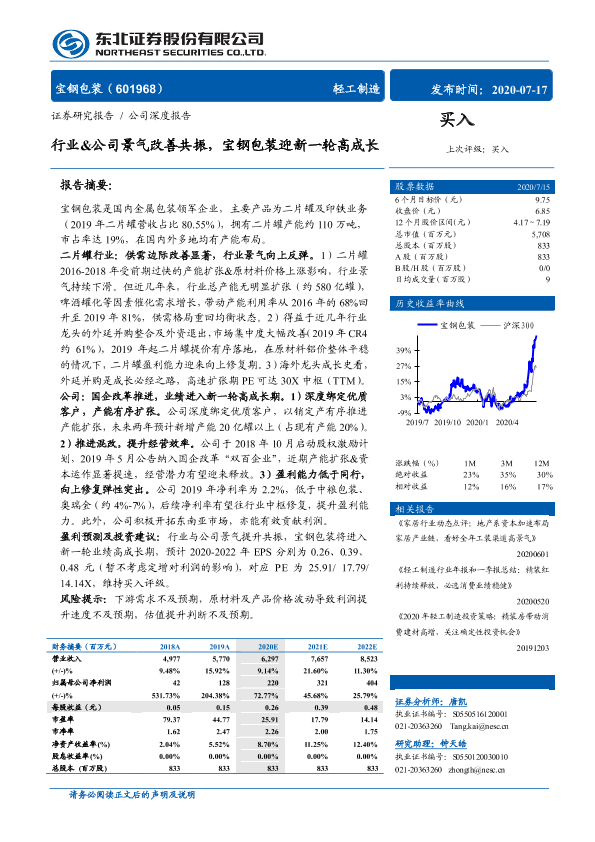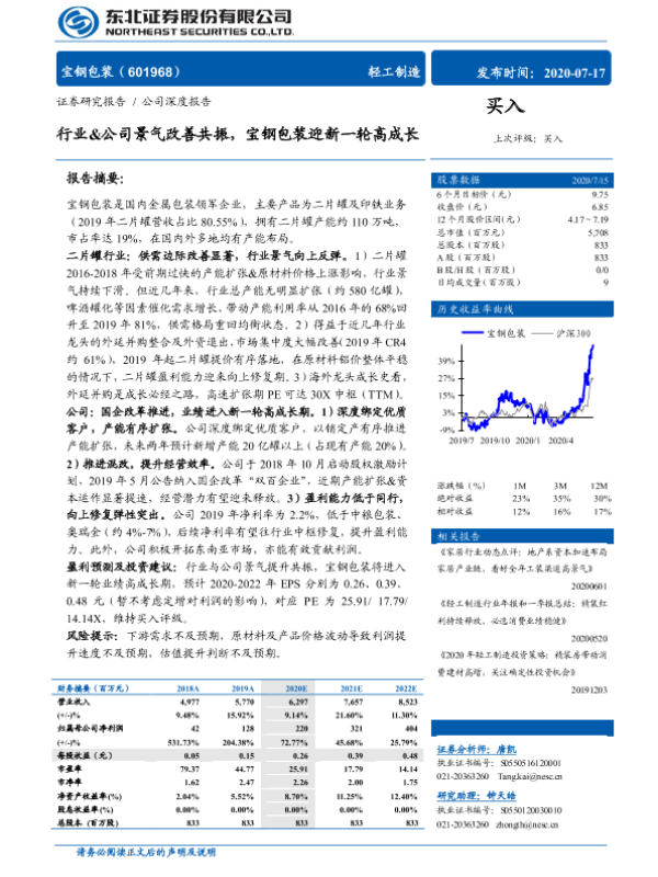 【东北证券】【20200717】行业&公司景气改善共振,宝钢包装迎新一轮高成长-36页