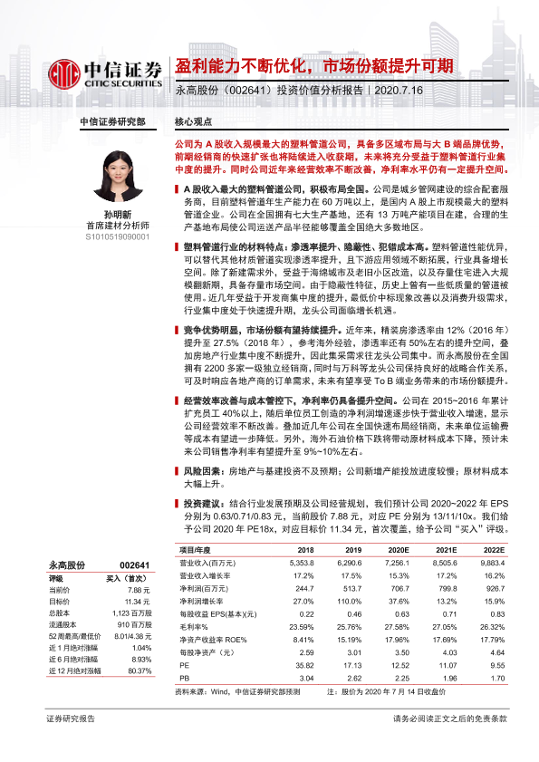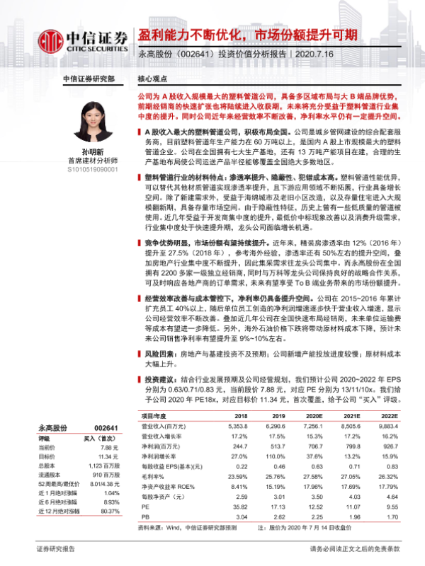 【中信证券】【20200716】20200716-中信证券-永高股份-002641.SZ-投资价值分析报告:盈利能力不断优化,市场份额提升可期-25页