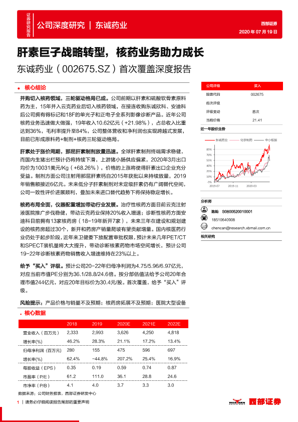 【西部证券】【20200719】20200719-西部证券-东诚药业-002675.SZ-首次覆盖深度报告:肝素巨子战略转型,核药业务助力成长-43页