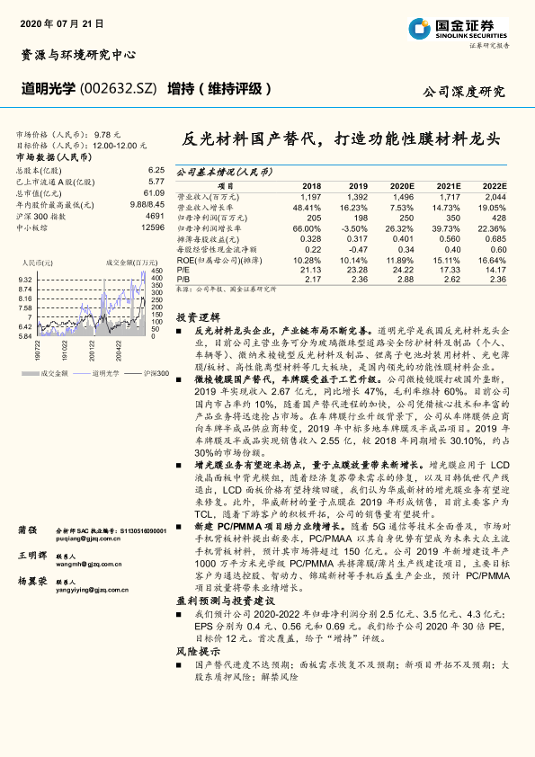 【国金证券】【20200721】道明光学-反光材料国产替代,打造功能性膜材料龙头-26页