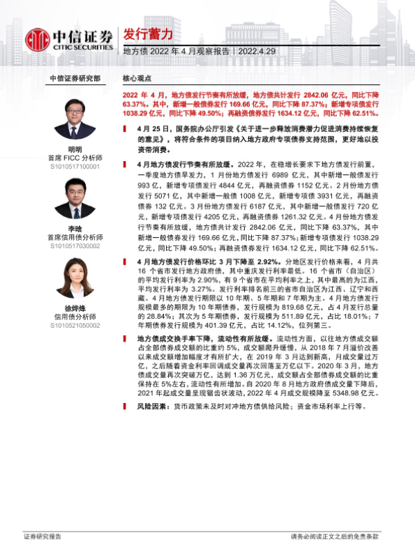 【中信证券】【20220429】地方债2022年4月观察报告:发行蓄力-20页