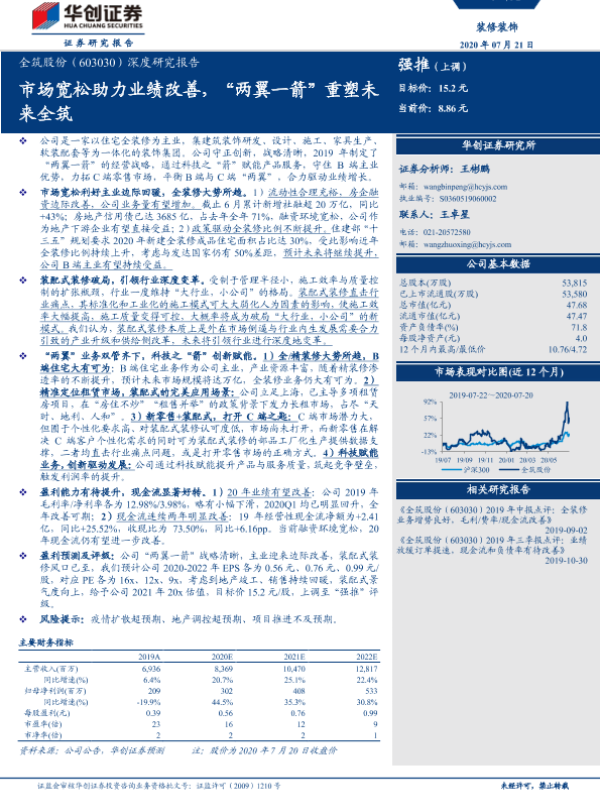 【华创证券】【20200721】20200721-华创证券-全筑股份-603030.SH-深度研究报告:市场宽松助力业绩改善,“两翼一箭”重塑未来全筑-20页