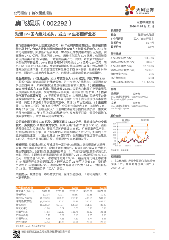 【天风证券】【20200721】奥飞娱乐-002292.SZ-动漫IP+国内绝对龙头,发力IP生态圈新业态-56页