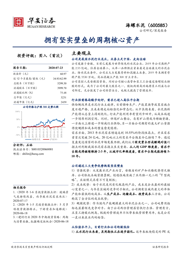 【华安证券】【20200723】拥有坚实壁垒的周期核心资产-43页