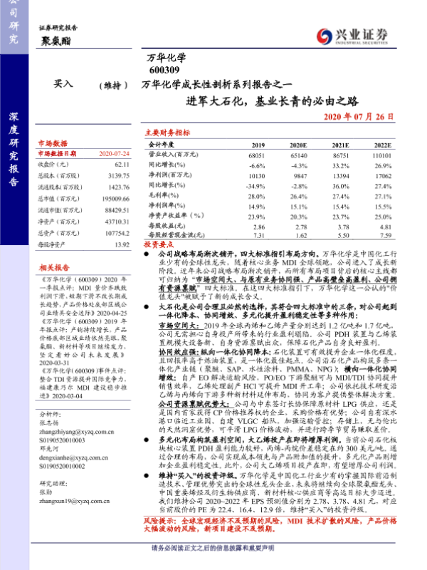 【兴业证券】【20200726】万华化学成长性剖析系列报告之一:进军大石化,基业长青的必由之路-34页