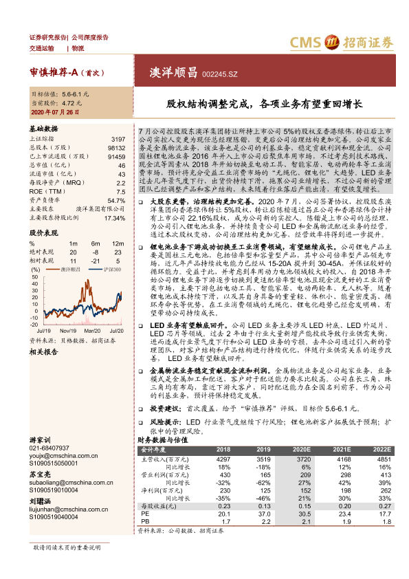【海通证券】【20200726】蔚蓝锂芯-股权结构调整完成,各项业务有望重回增长-16页