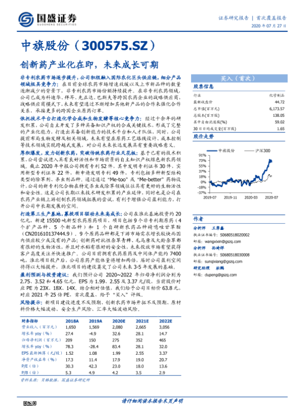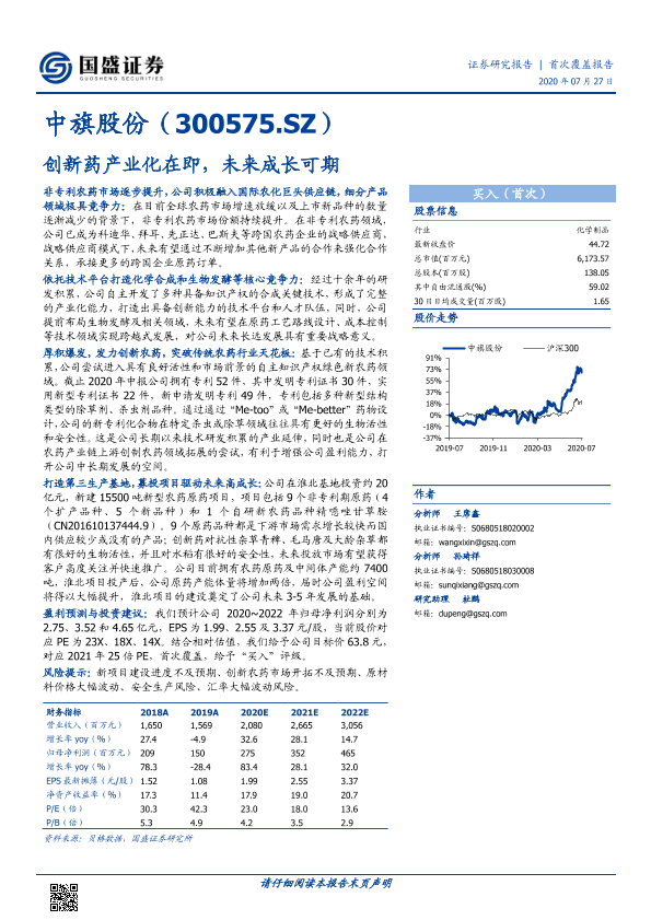 【国盛证券】【20200727】中旗股份-创新药产业化在即,未来成长可期-21页