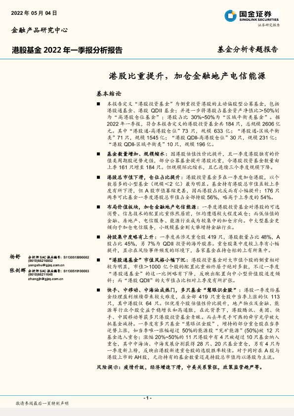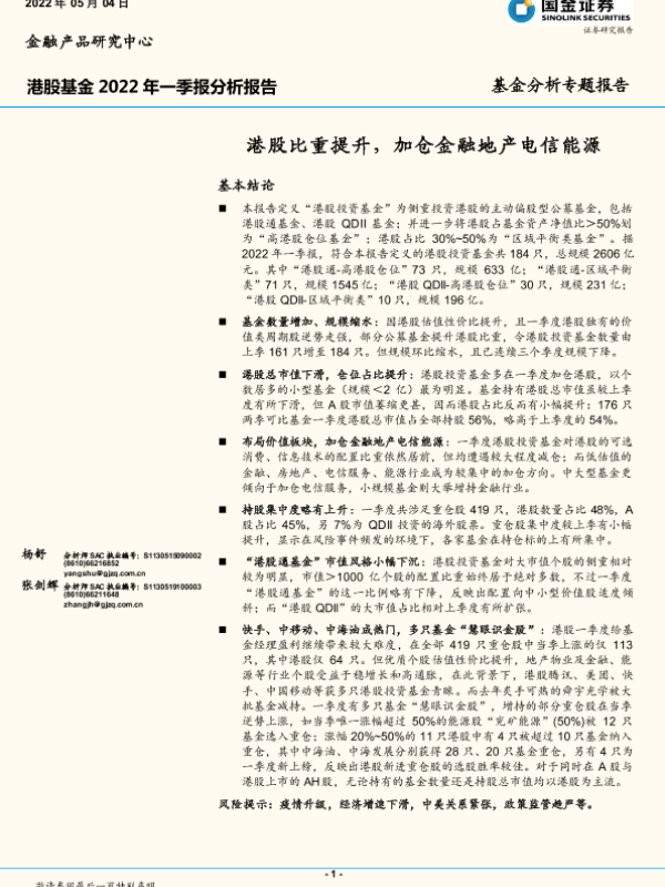 【国金证券】【20220504】基金分析专题报告:港股比重提升,加仓金融地产电信能源-22页