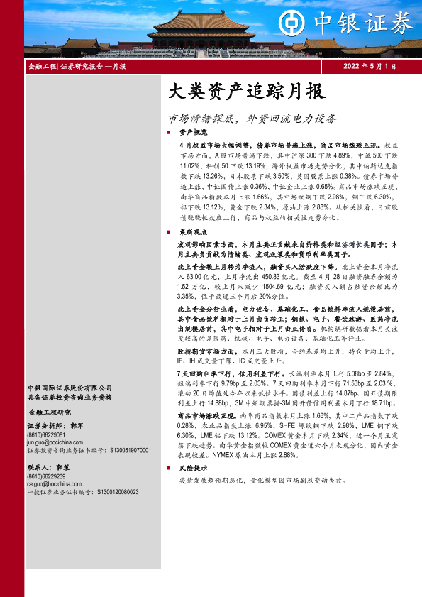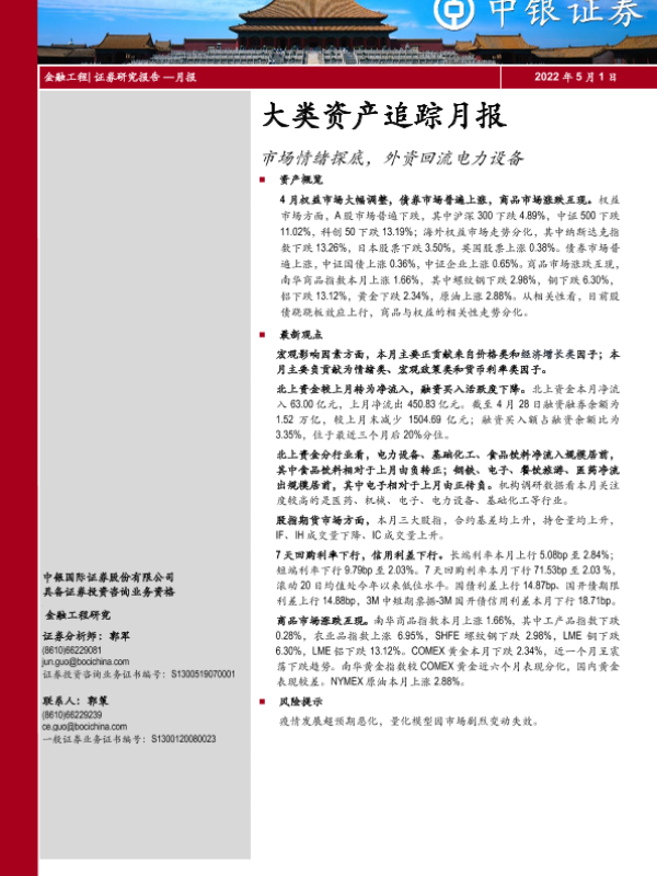 【中银证券】【20220501】大类资产追踪月报:市场情绪探底,外资回流电力设备-16页