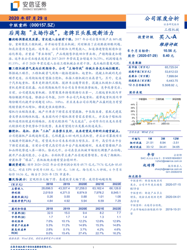 【安信证券】【20200729】20200729-安信证券-中联重科-000157.SZ-后周期“主场作战”,老牌巨头展现新活力-26页