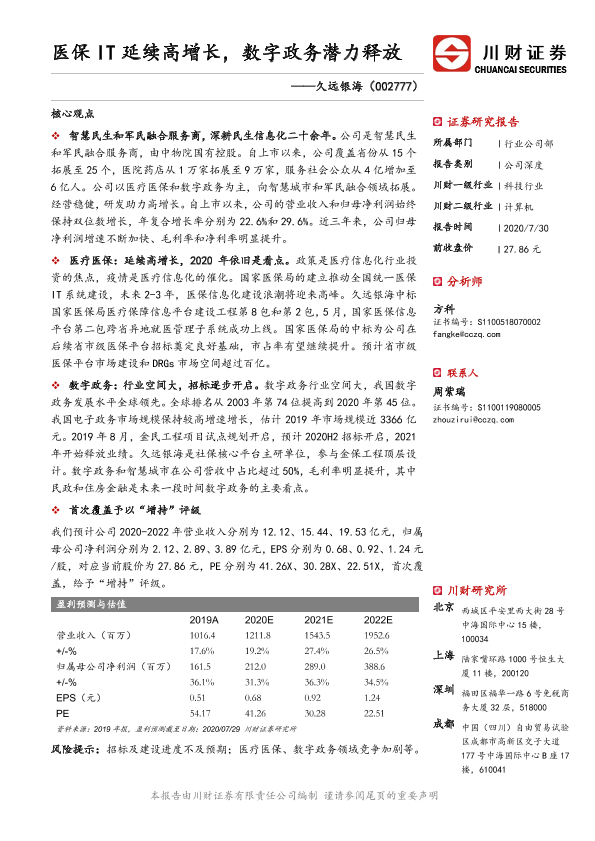 【川财证券】【20200730】医保IT延续高增长,数字政务潜力释放-25页