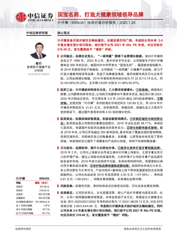 【中信证券】【20200729】20200729-中信证券-片仔癀-600436.SH-投资价值分析报告:国宝名药,打造大健康领域领导品牌-52页