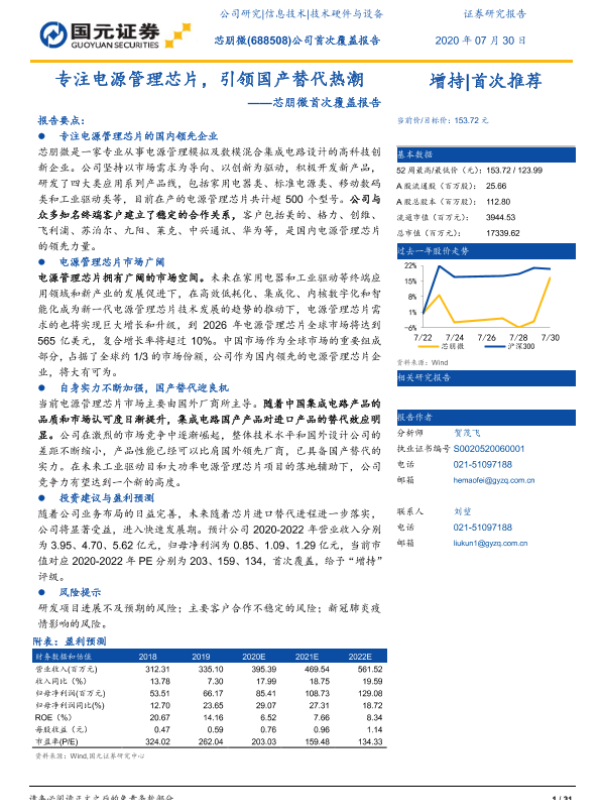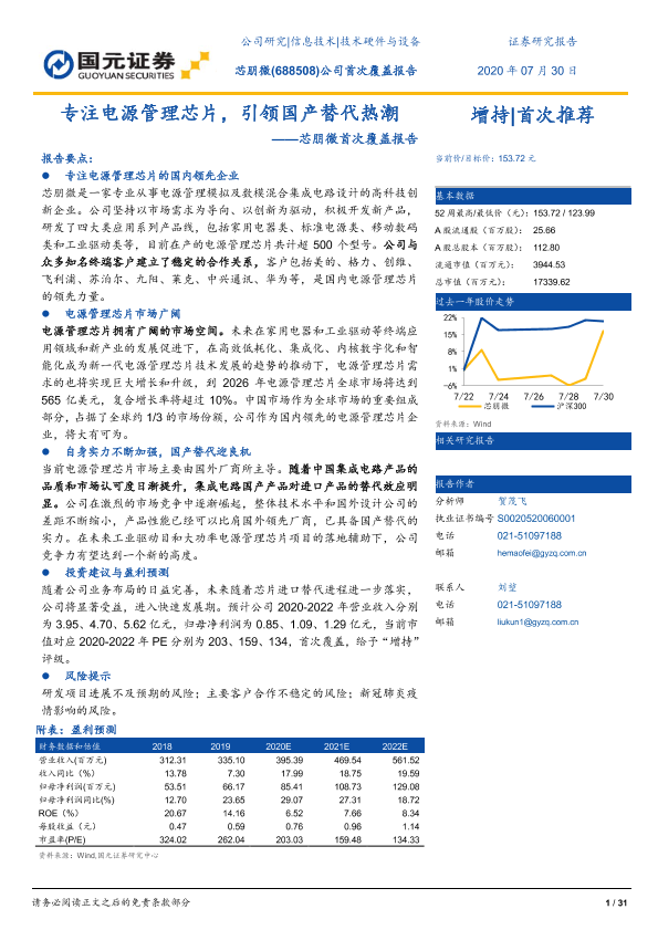 【国元证券】【20200730】芯朋微首次覆盖报告:专注电源管理芯片,引领国产替代热潮-31页
