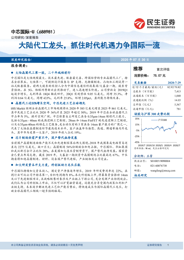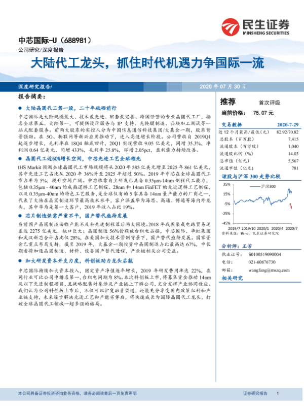 【民生证券】【20200730】大陆代工龙头,抓住时代机遇力争国际一流-40页