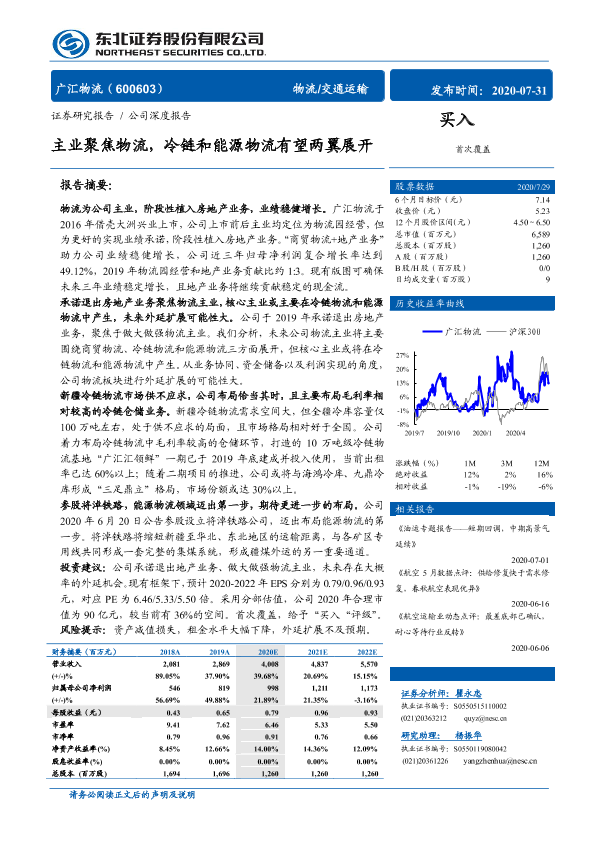 业绩增长 冷链物流 广汇物流 房地产 能源物流