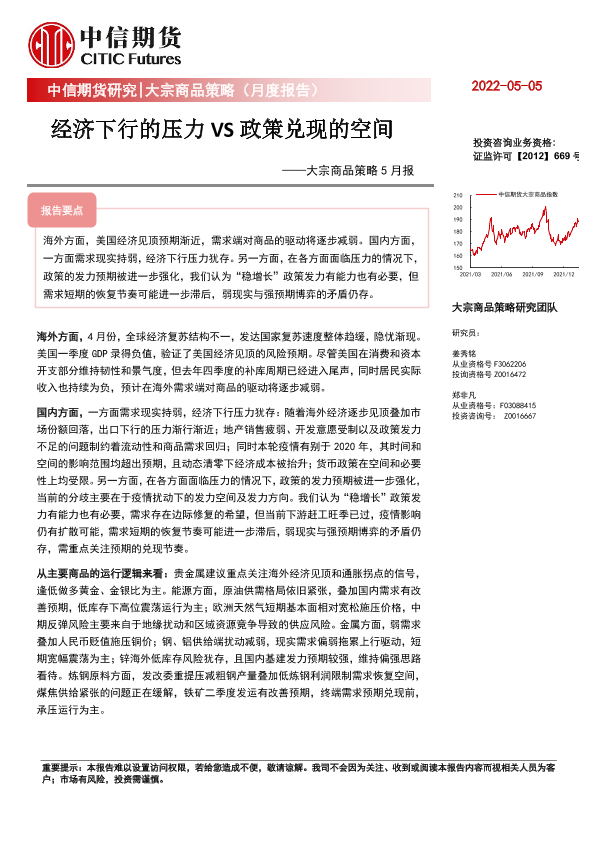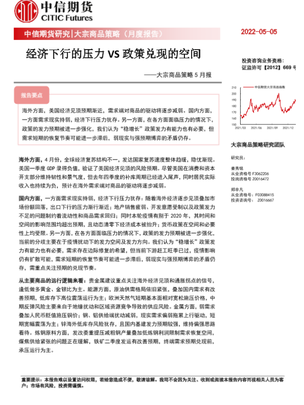 【中信期货】【20220505】大宗商品策略5月报:经济下行的压力VS政策兑现的空间-33页