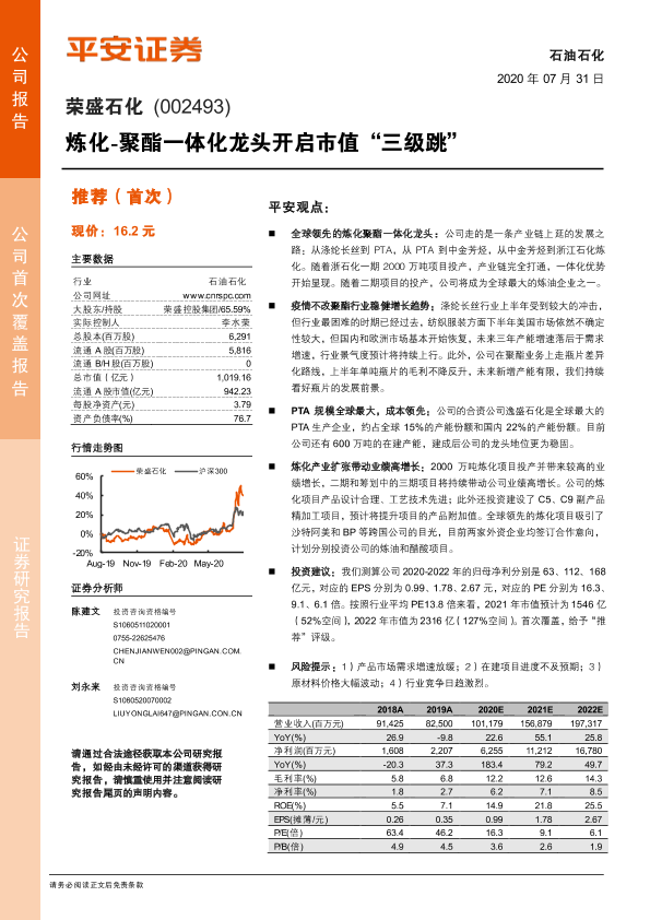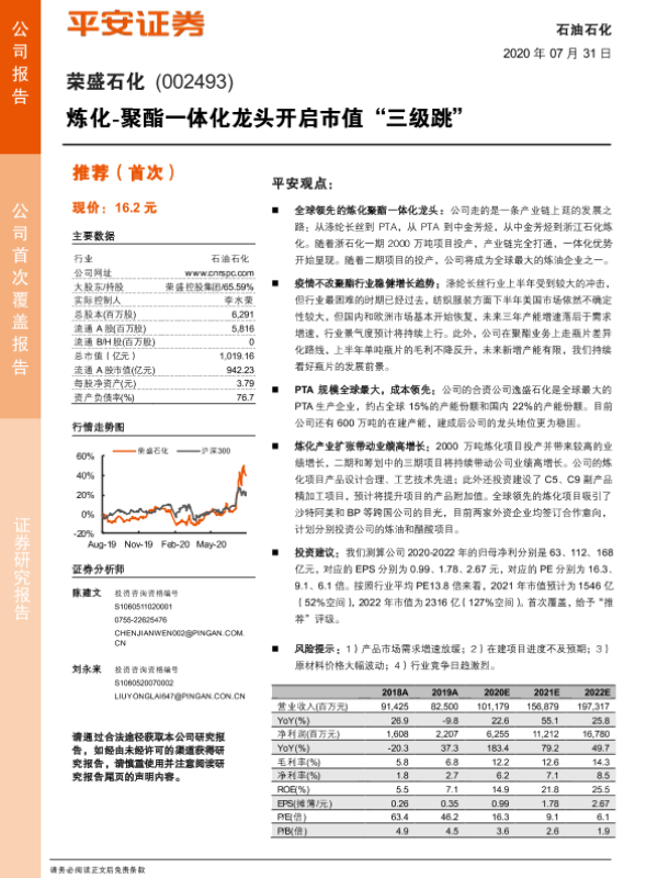 【平安证券】【20200731】荣盛石化-炼化-聚酯一体化龙头开启市值“三级跳”-31页