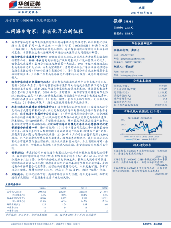 【华创证券】【20200802】20200802-华创证券-海尔智家-600690.SH-深度研究报告:三问海尔智家:私有化开启新征程-19页