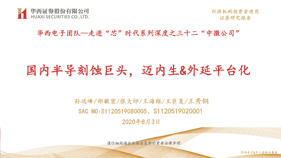 【华西证券】【20200803】走进“芯”时代系列深度之三十二“中微公司”:国内半导刻蚀巨头,迈内生&外延平台化-80页