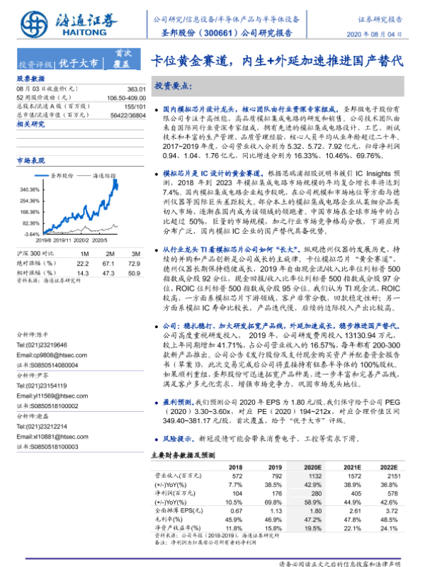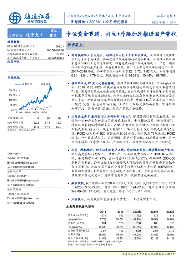 【海通证券】【20200804】圣邦股份-300661.SZ-公司研究报告:卡位黄金赛道,内生+外延加速推进国产替代-24页