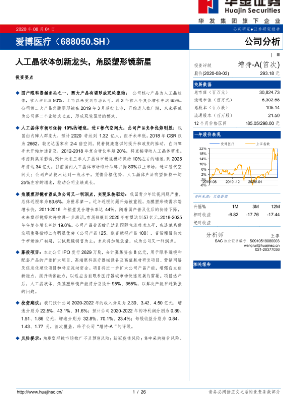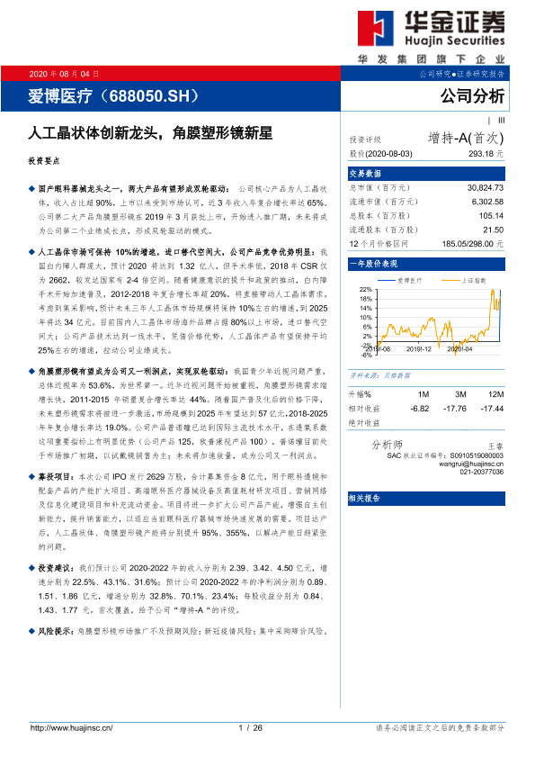 【华金证券】【20200804】爱博医疗-人工晶状体创新龙头,角膜塑形镜新星-26页