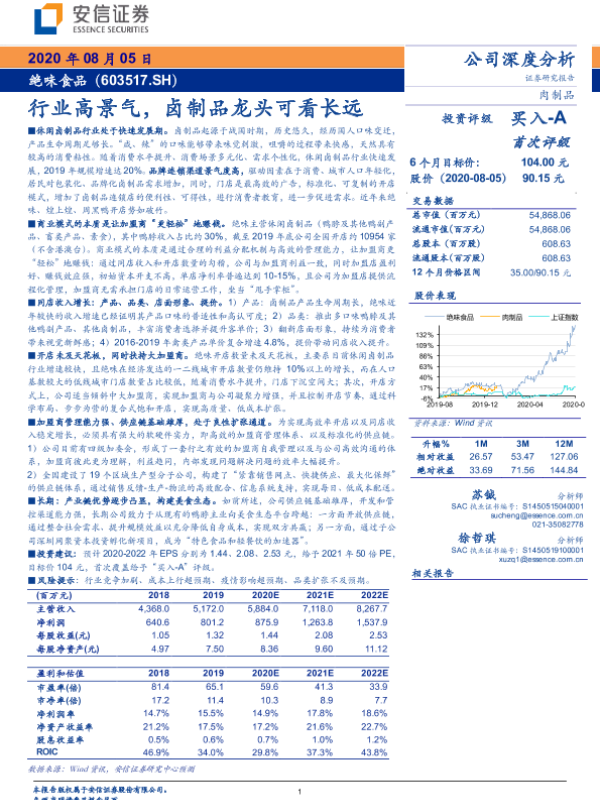 【安信证券】【20200805】行业高景气,卤制品龙头可看长远-19页