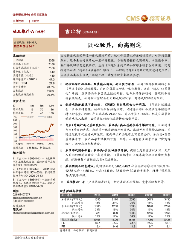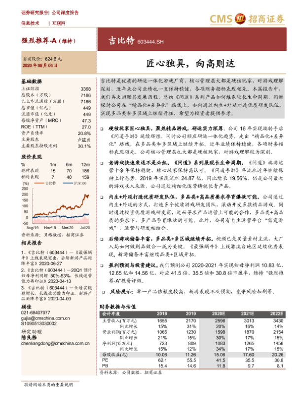 吉比特 游戏产业 精品化战略 财务分析 问道手游