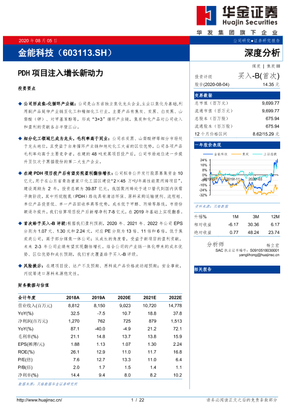 【华金证券】【20200805】金能科技(603113.SH)深度分析:PDH项目注入增长新动力-22页