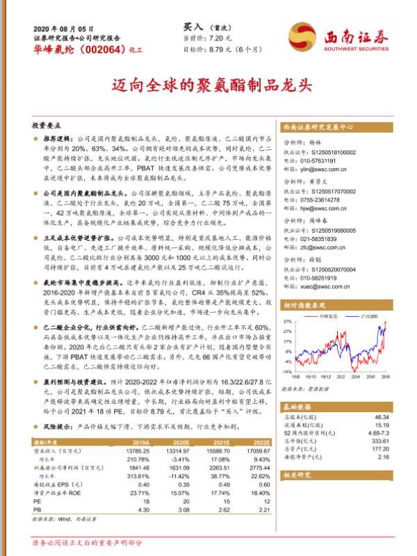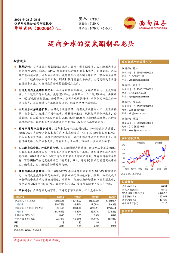 【西南证券】【20200805】20200805-西南证券-华峰化学-002064.SZ-迈向全球的聚氨酯制品龙头-32页