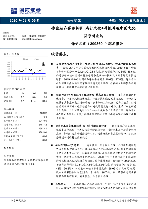 【国海证券】【20200806】20200806-国海证券-锋尚文化-300860.SZ-深度报告:体验经济再添新将 践行文化+科技再造中国文化符号新表达-33页