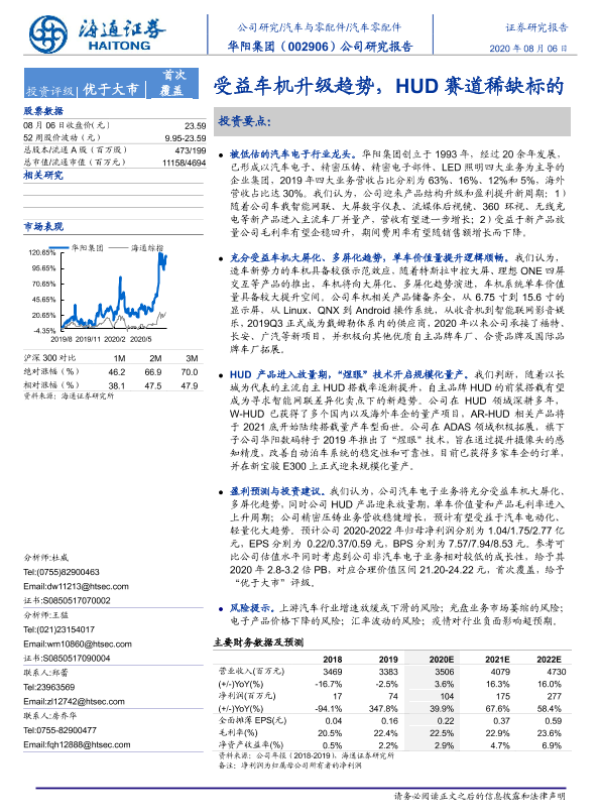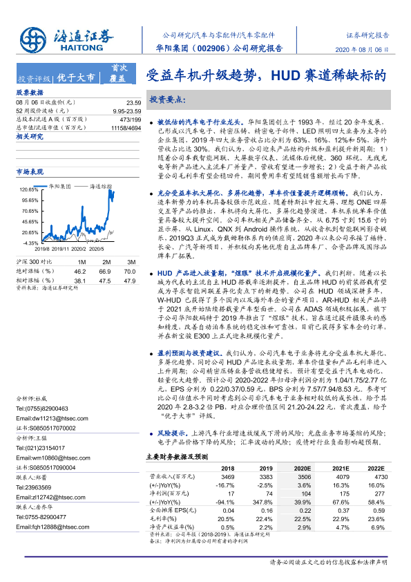 【海通证券】【20200806】华阳集团-002906.SZ-公司研究报告:受益车机升级趋势,HUD赛道稀缺标的-21页