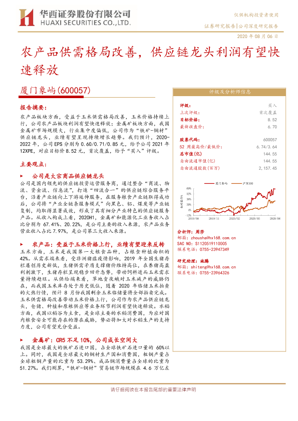 【华西证券】【20200806】农产品供需格局改善,供应链龙头利润有望快速释放-20页