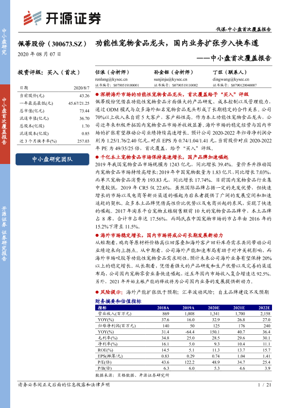 【开源证券】【20200807】佩蒂股份-300673.SZ-中小盘首次覆盖报告:功能性宠物食品龙头,国内业务扩张步入快车道-21页
