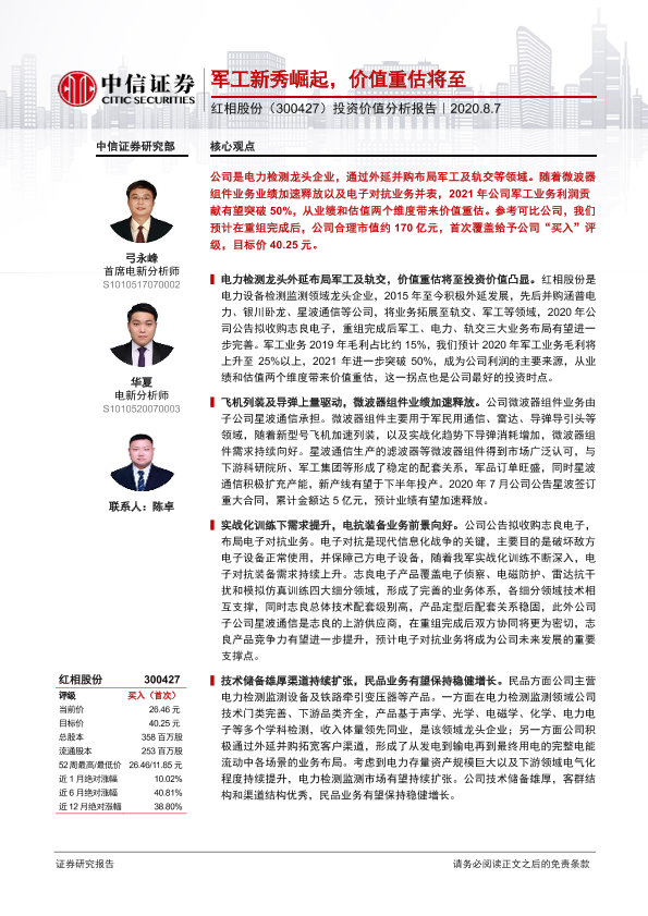【中信证券】【20200807】红相股份-300427.SZ-投资价值分析报告:军工新秀崛起,价值重估将至-38页